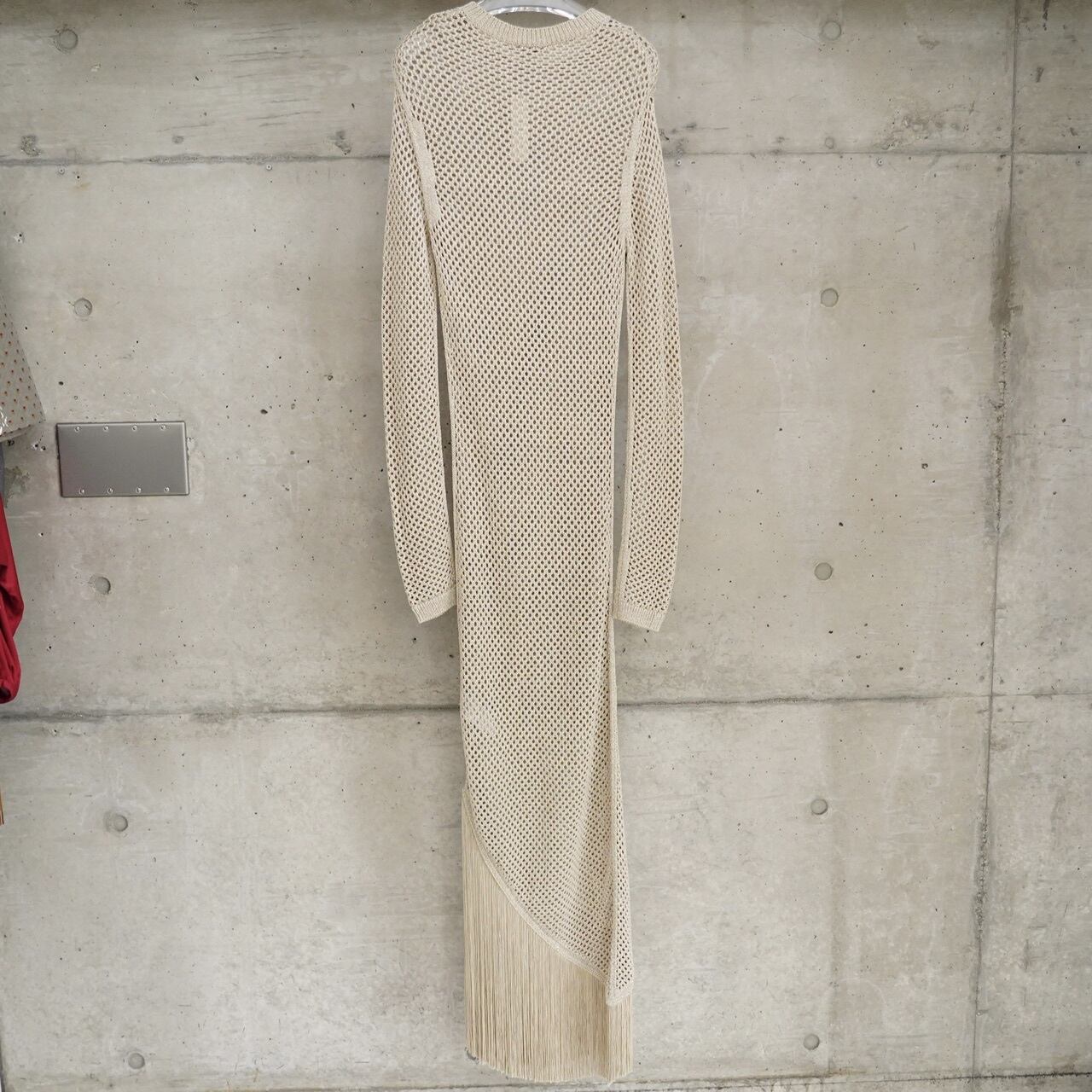 ゴールドのラメ糸が織り込まれたメッシュニットのロングドレス。