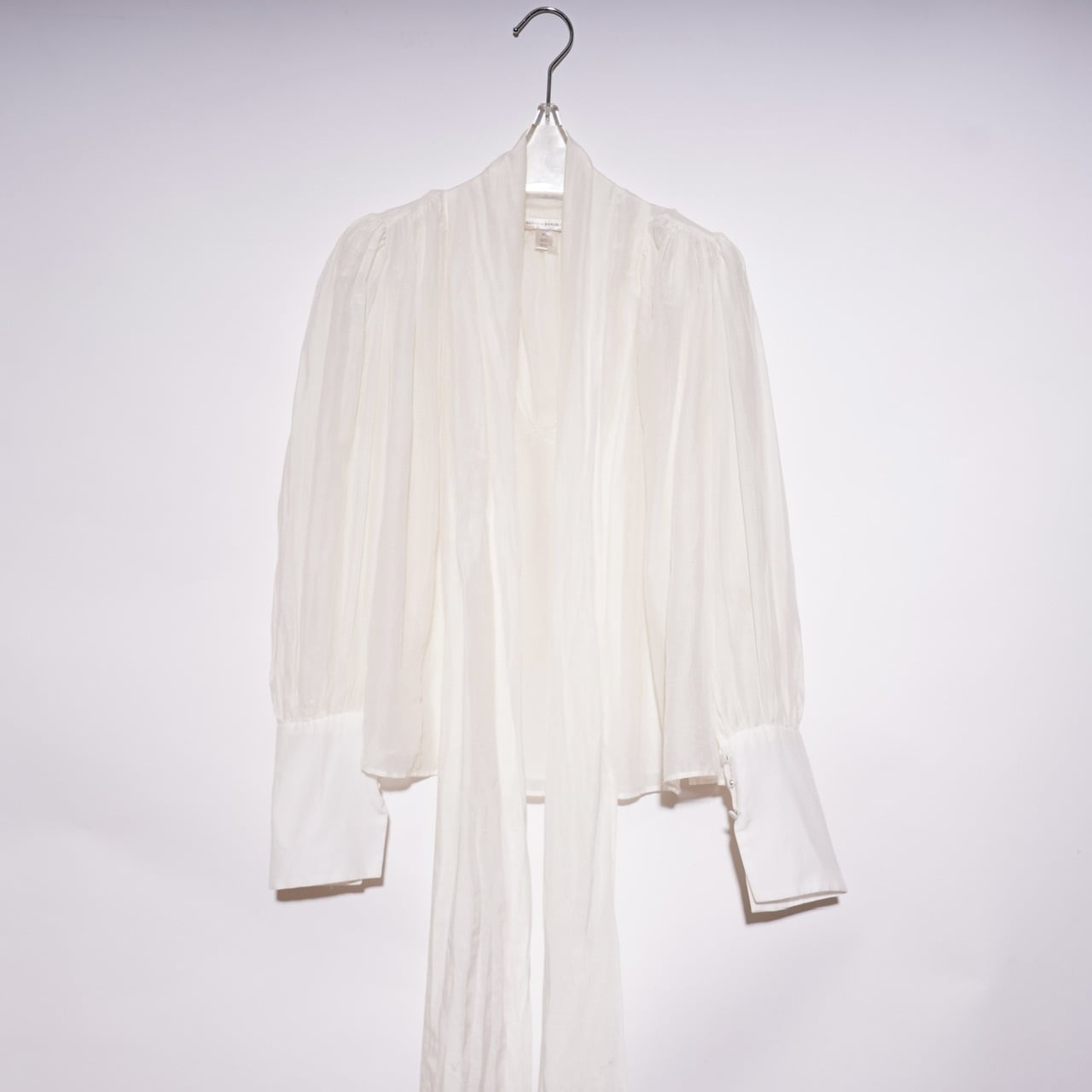 長いボウタイは結ぶだけでなく、ぐるぐると巻きつけたり、さらりと垂らしたりとアレンジが楽しそうです。