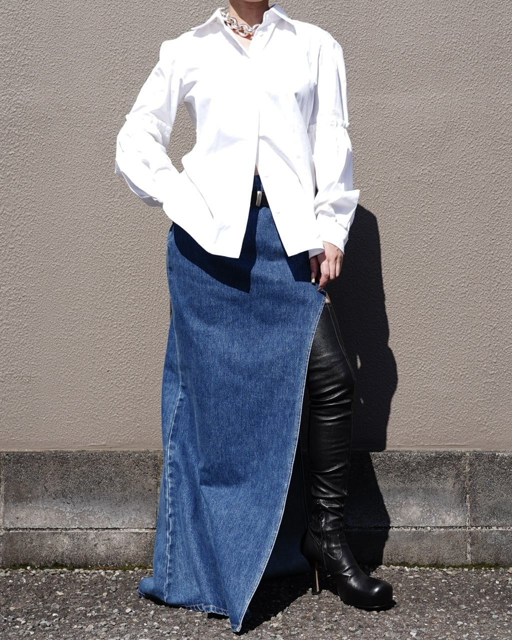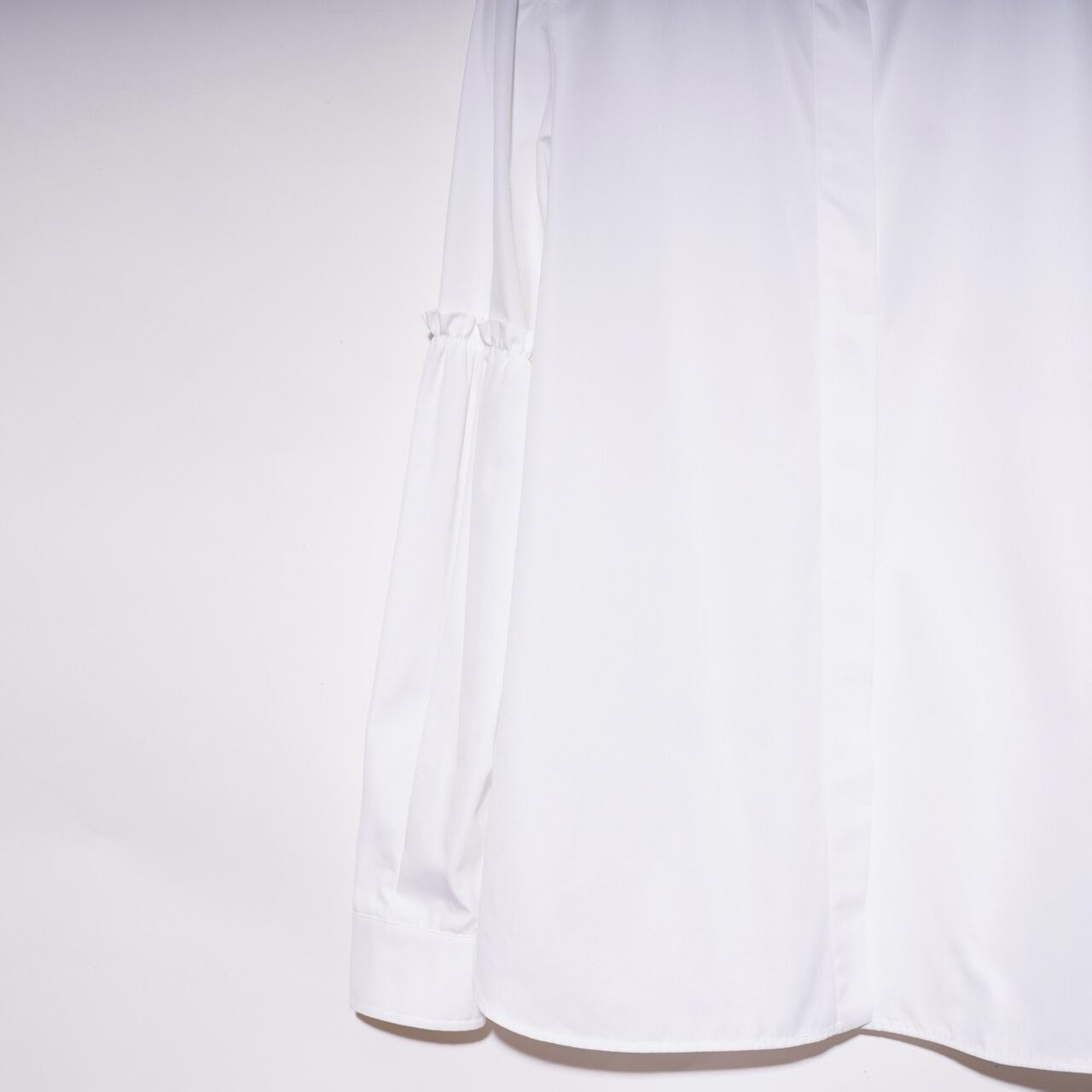 しっかり目の詰まったハリ感のある上質な質感。ボリュームのあるスリーブデザインも上品です。