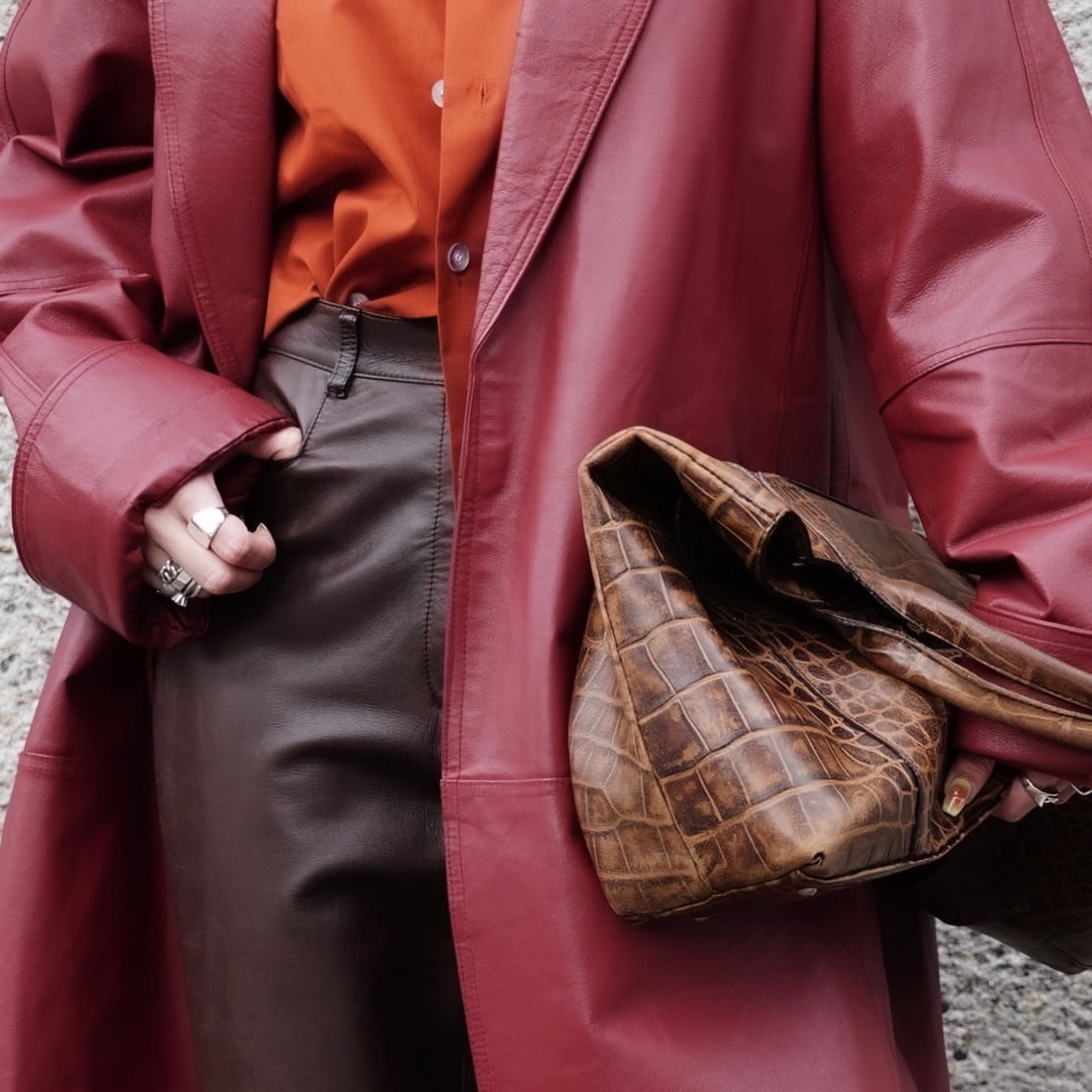形が良く革質も良いので、レディースはオーバーサイズ、メンズはジャストで決まります。