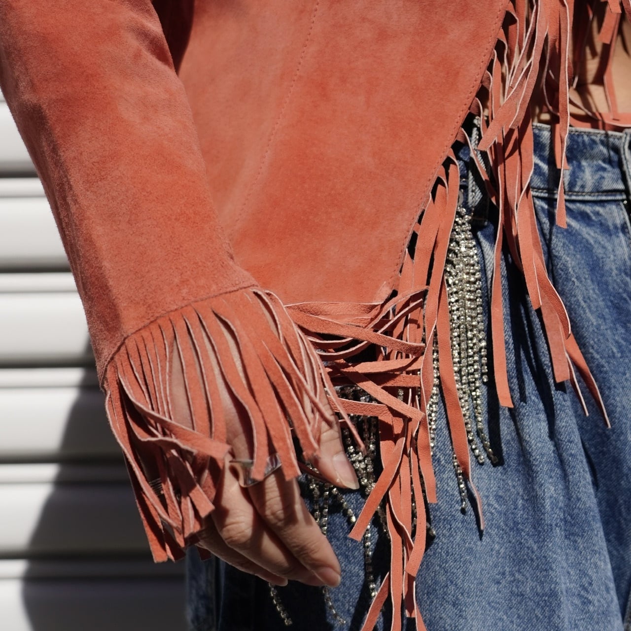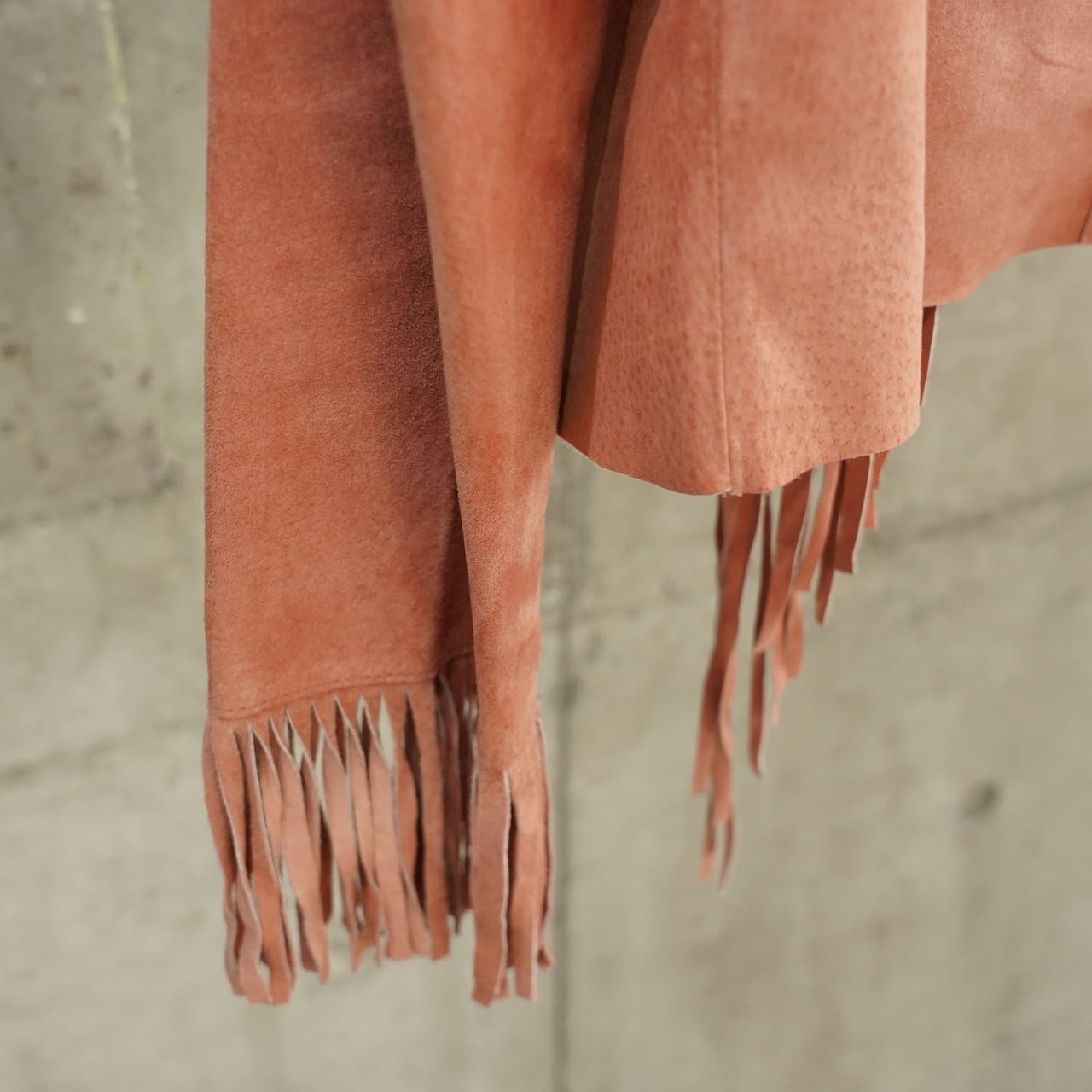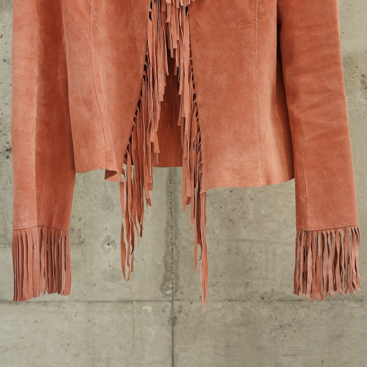 華やかな色味にたっぷりのフリンジが印象的な ジャケットです。