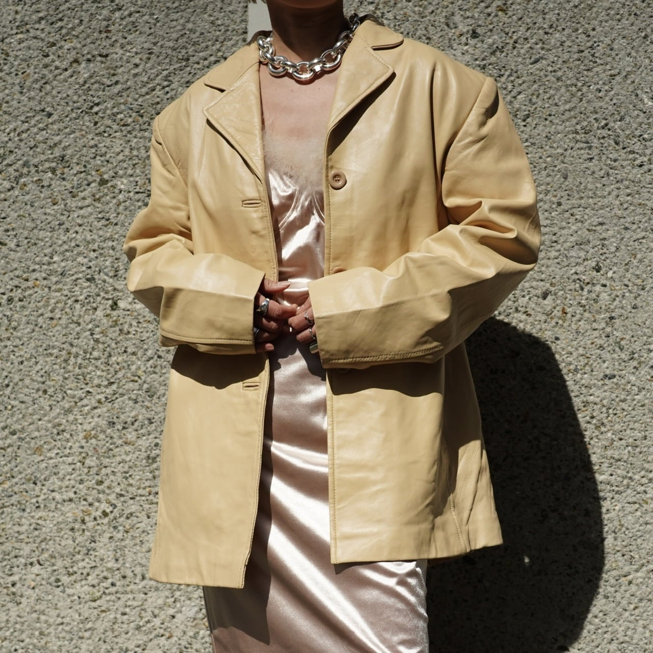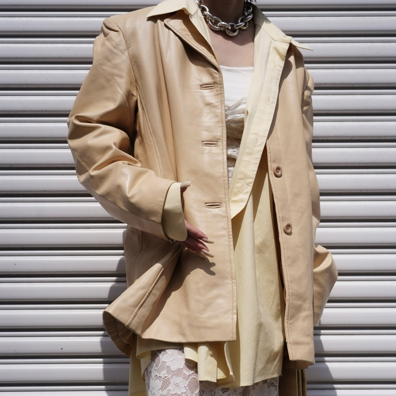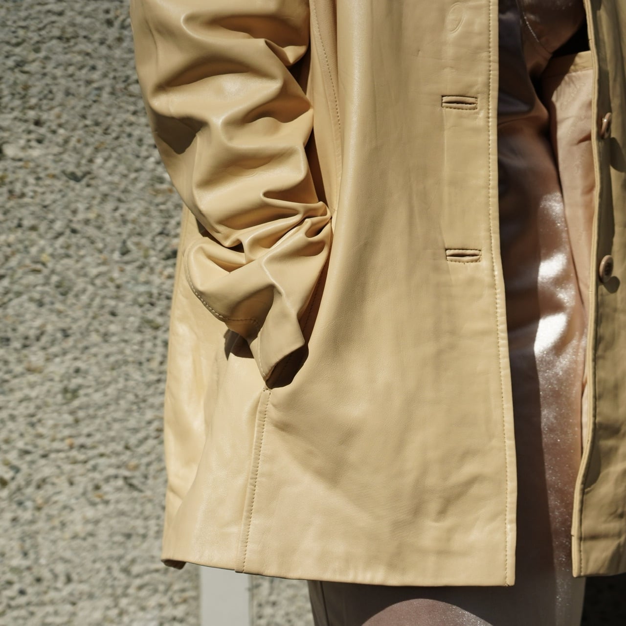 ラムスキンならではの、もっちりとした滑らかなレザーの質感。着心地も抜群です。