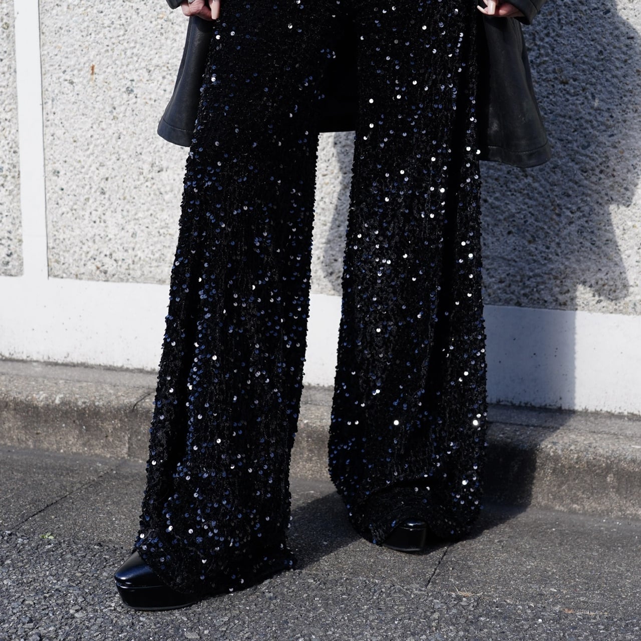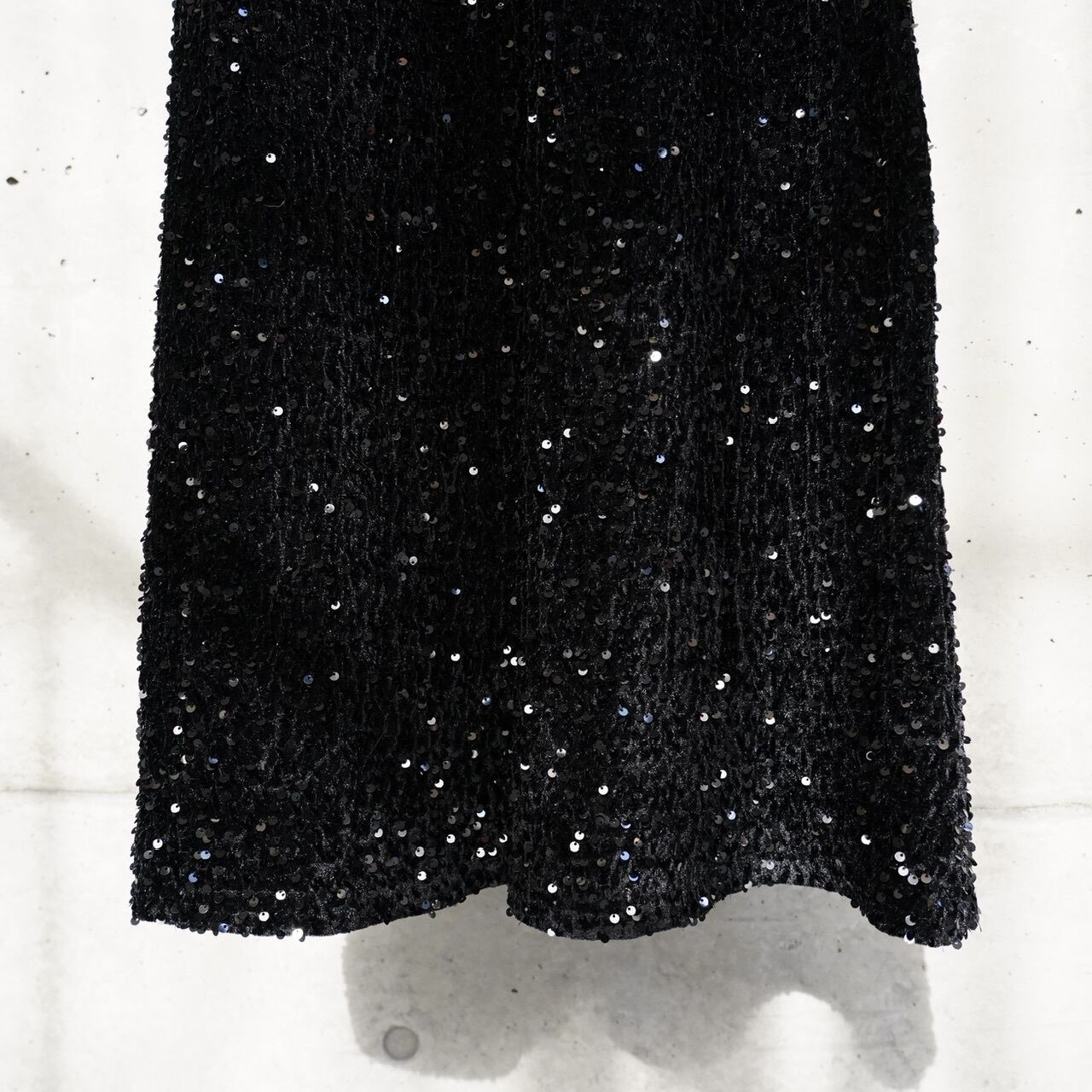 ニット地のようなふわふわな生地にスパンコールが施されています。