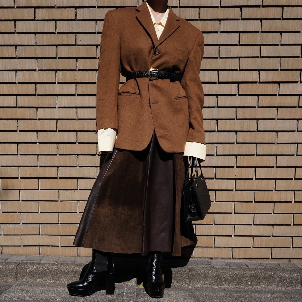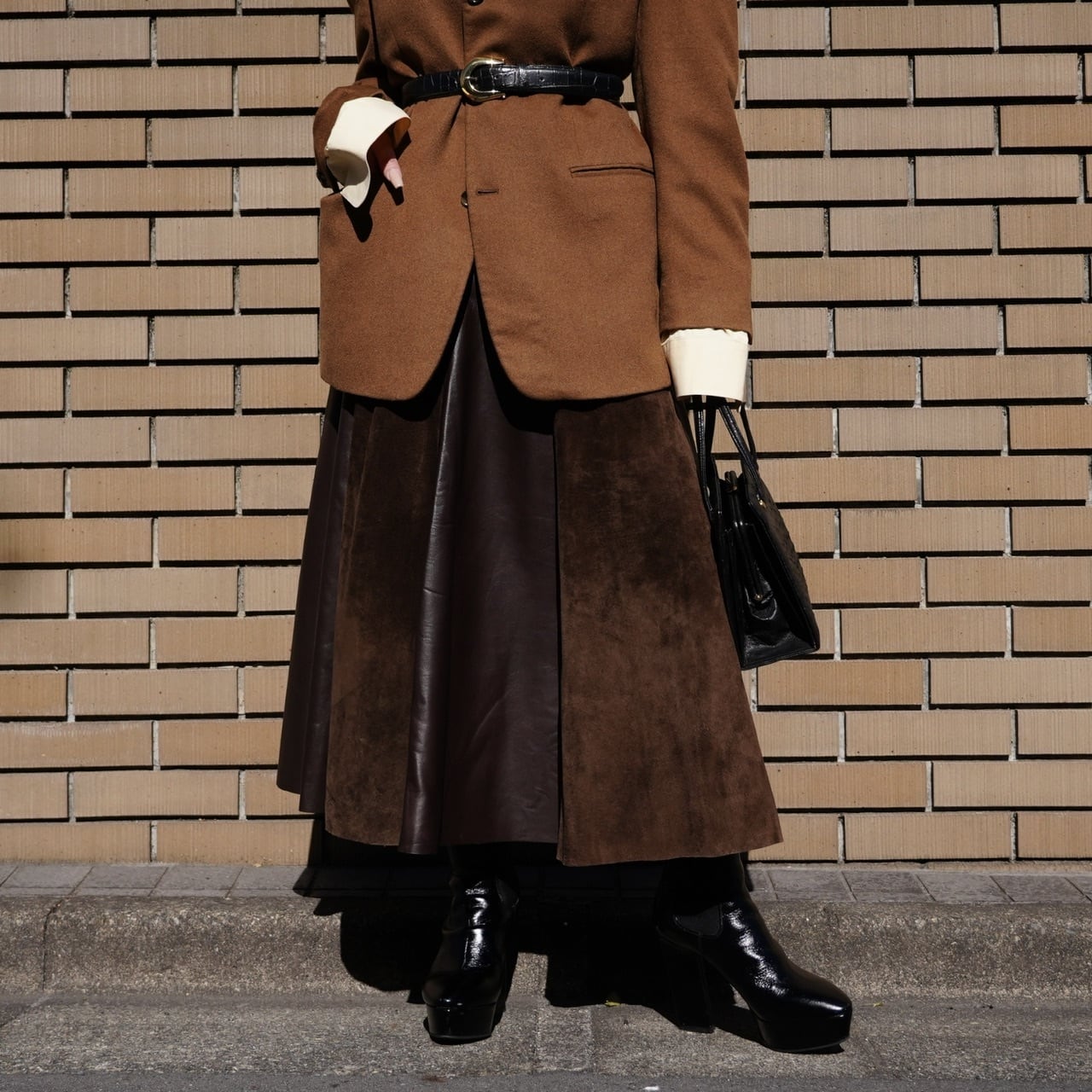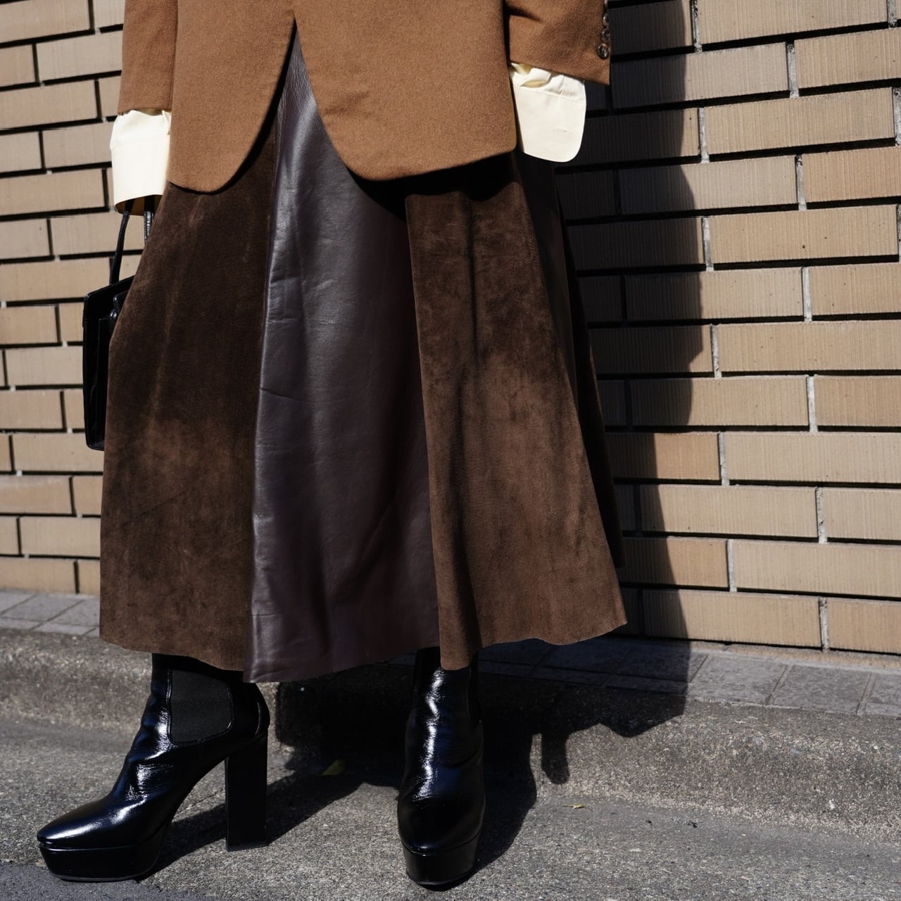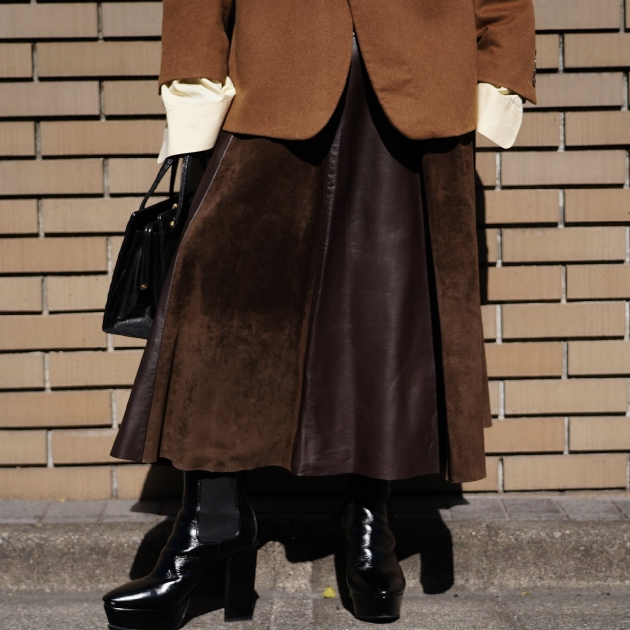 柔らかなレザーなので履きやすく、フレアに広がるシルエットも美しいです。