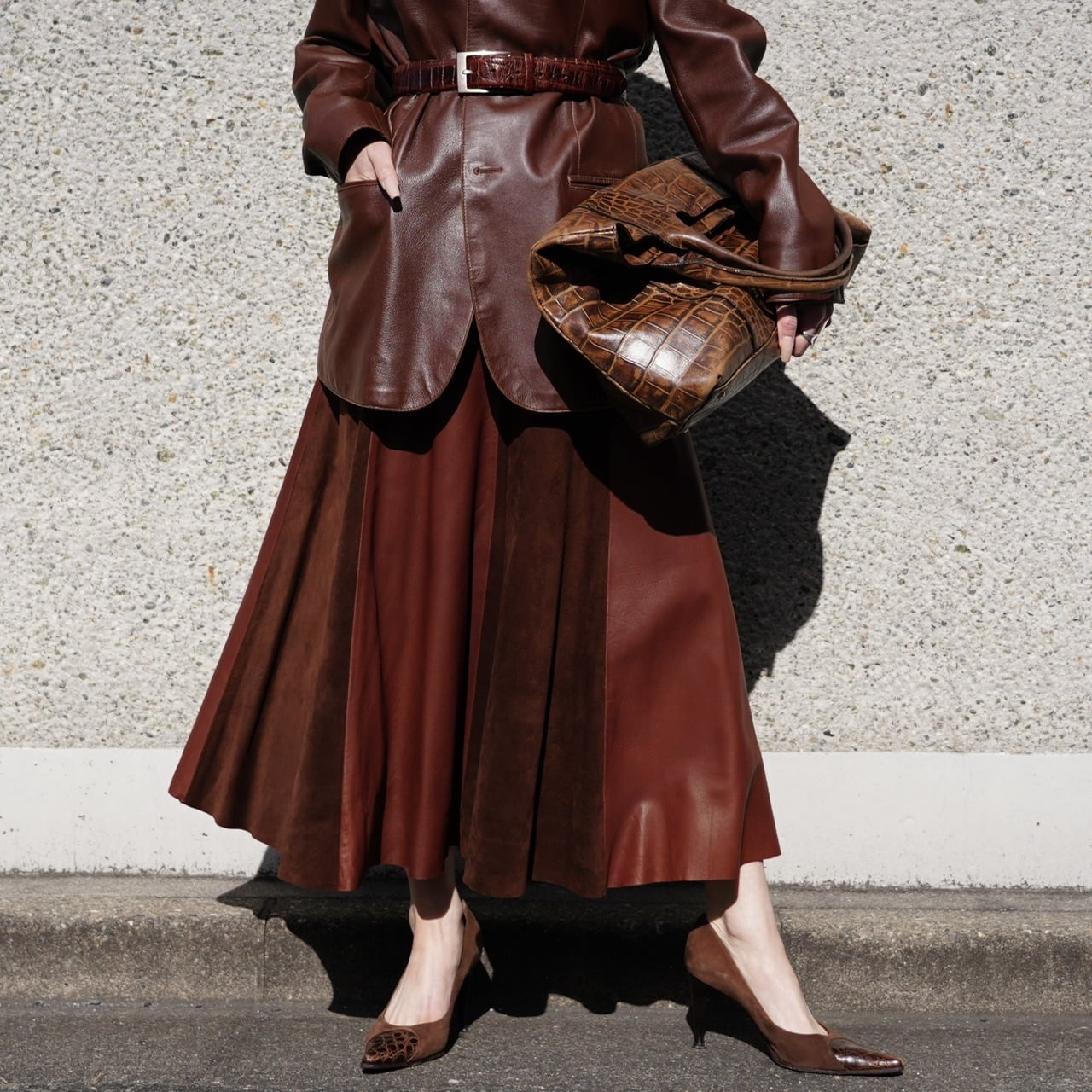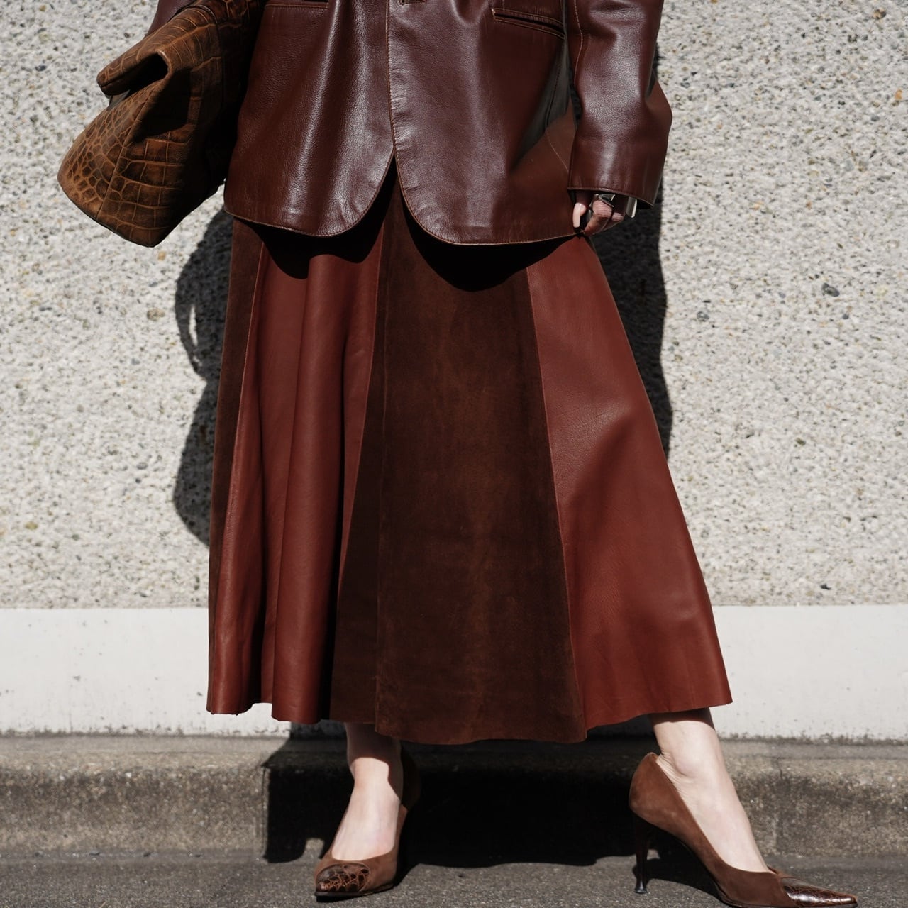 柔らかなレザーなので履きやすく、フレアに広がるシルエットも美しいです。