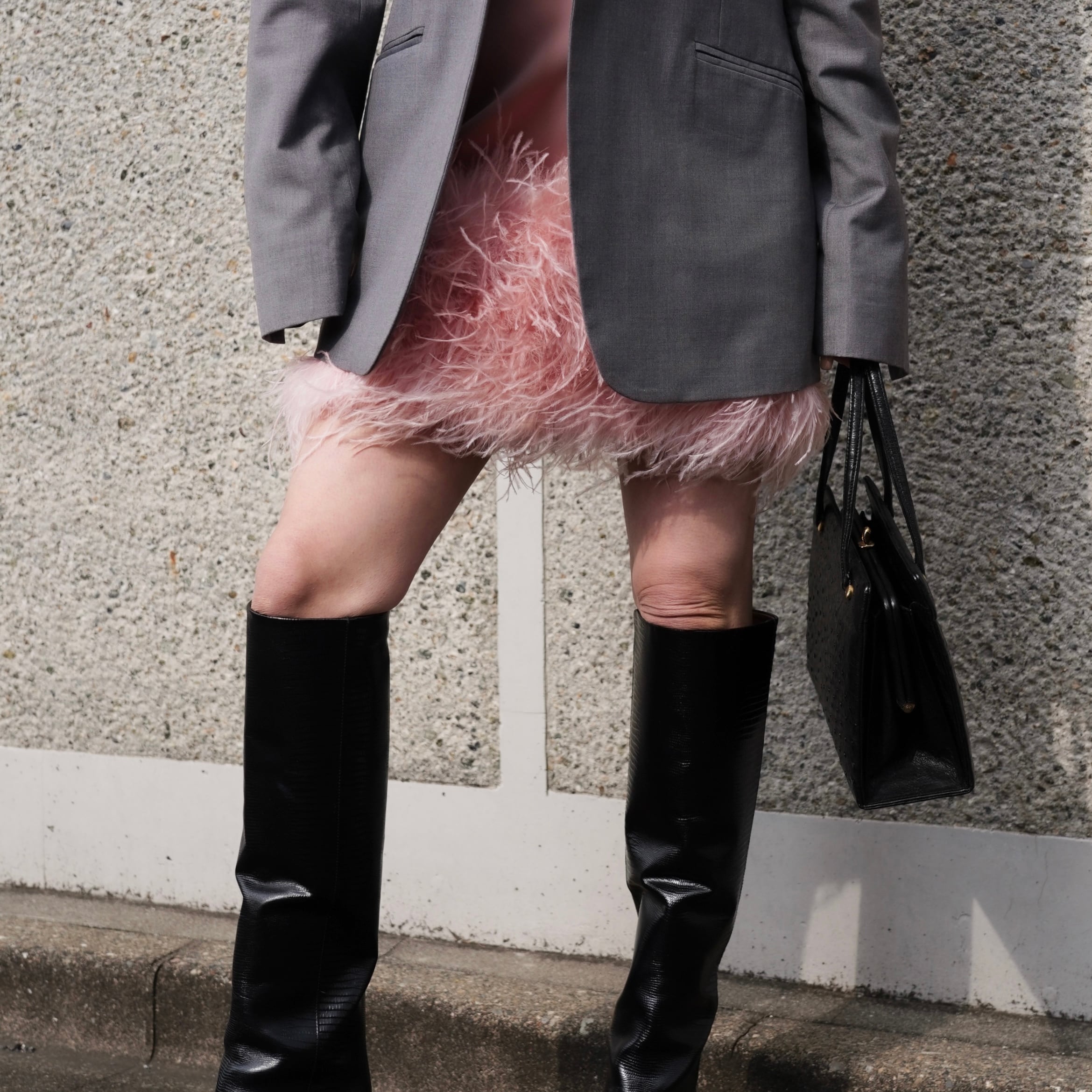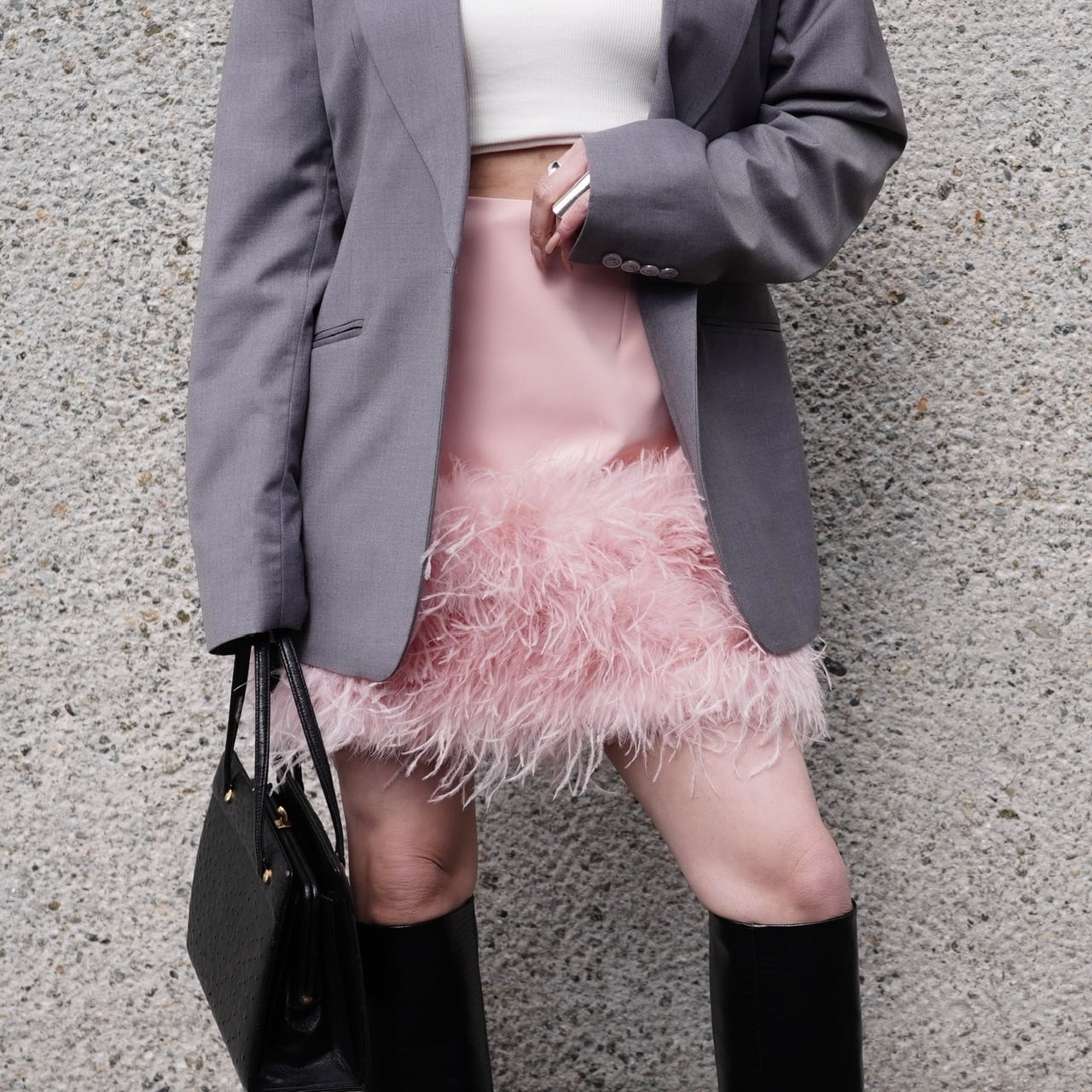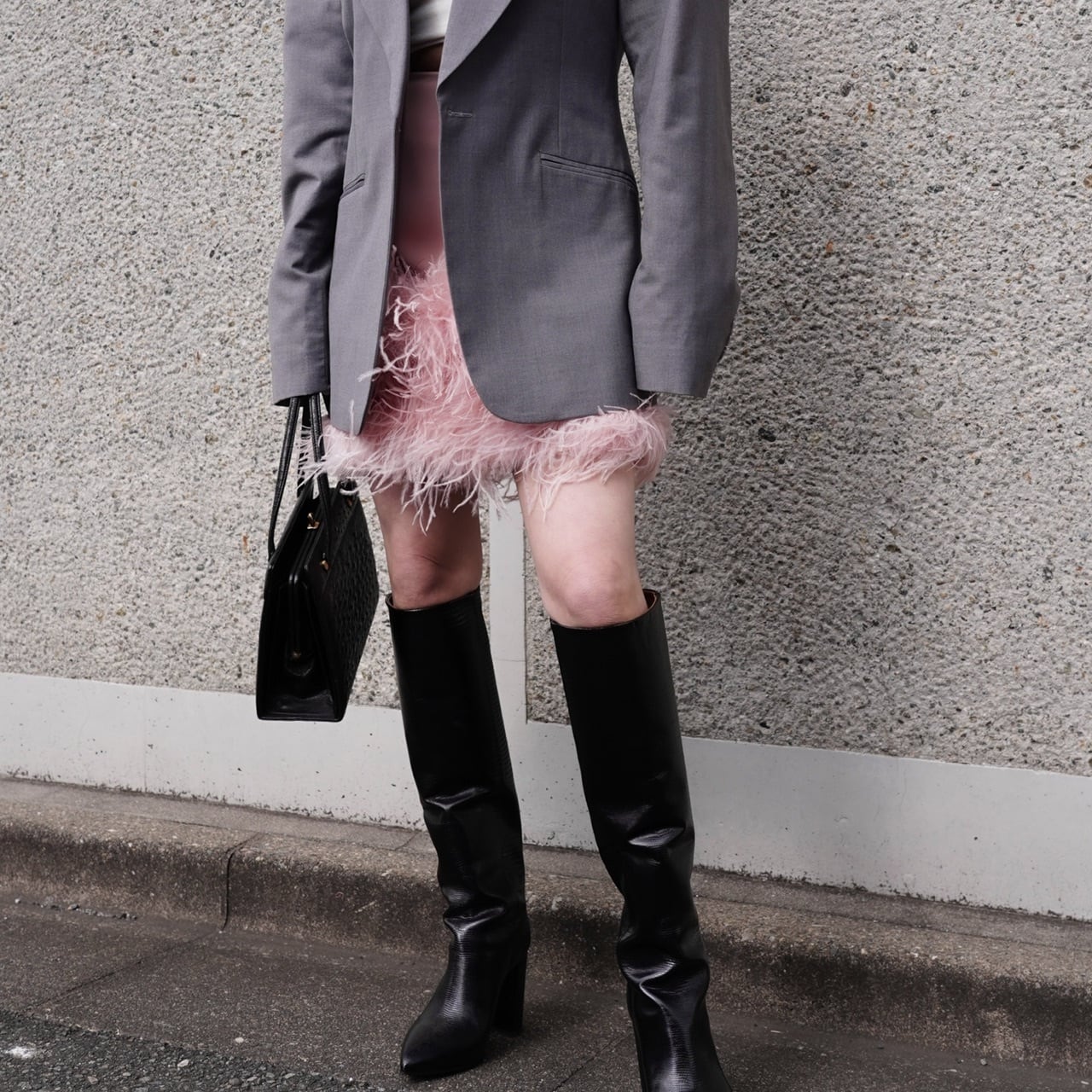 ボリューム感のあるフェザーがたっぷりと贅沢に施されたスカートです。